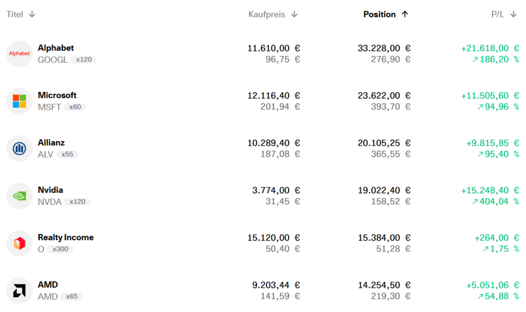 Die oben aufgeführten Aktien sind aktuell. Ehemalige Unternehmen aus meinem Depot und deren Dividenden sind hier nicht aufgeführt.