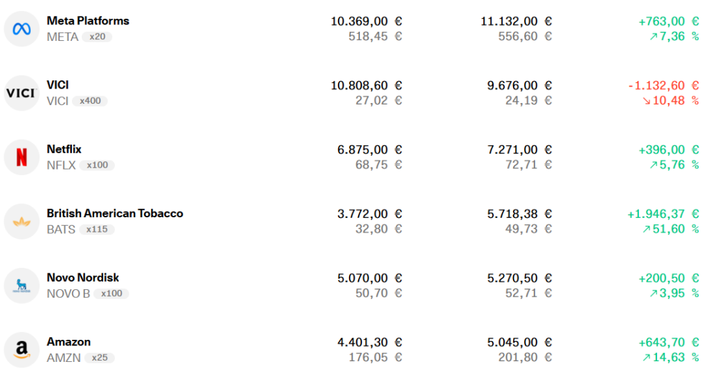 | British American Tabacco | 115 | 3.760 € | 389 € |
