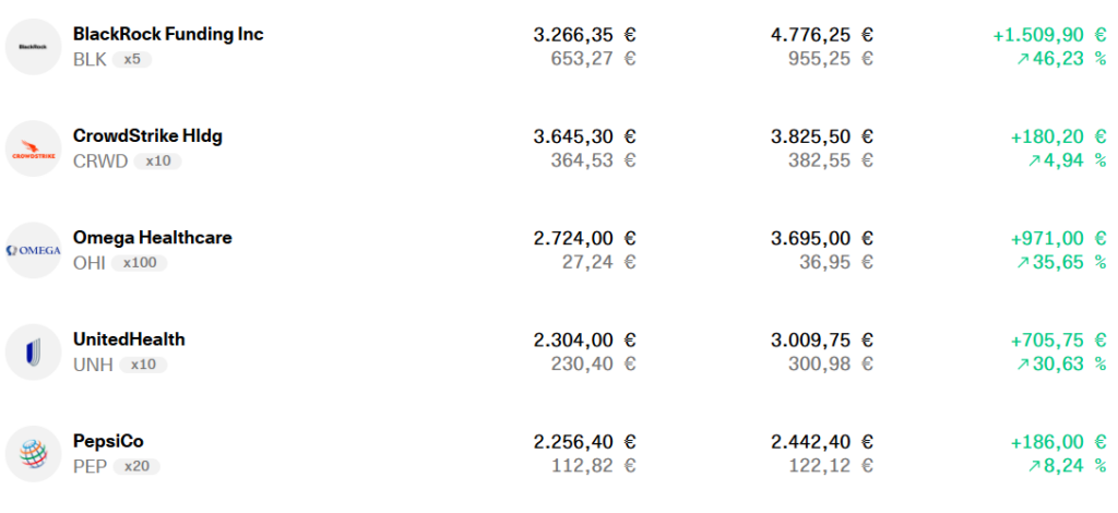 | UnitedHealth | 10 | 2.304 € | 56 € |